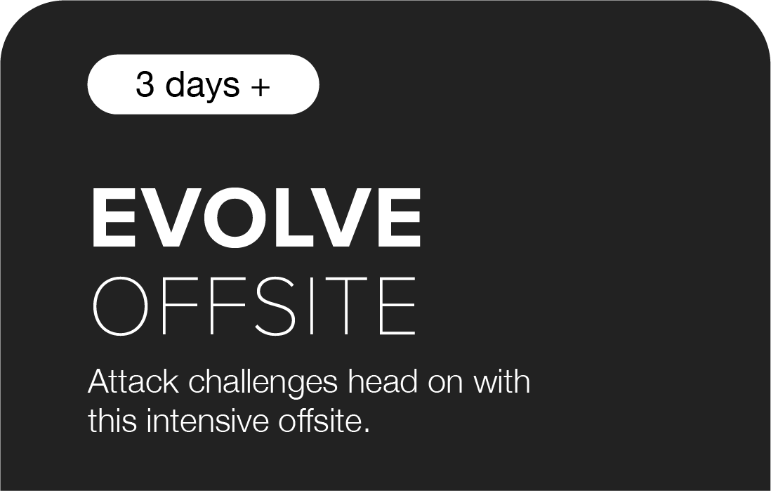 Designed for bold thinking and big moves. This is an intensive offsite built for high-performing leadership teams ready to dive deep into complex strategic challenges. Expect high-focus work sessions, and the space to confront what matters most.